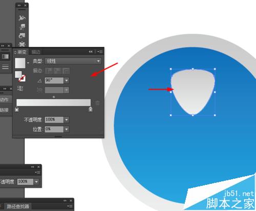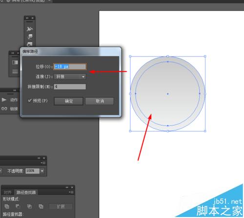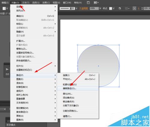 2、然后选中圆形对象—路径—偏移路径,并添加渐变颜色,如图所示