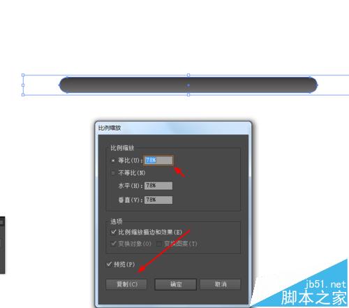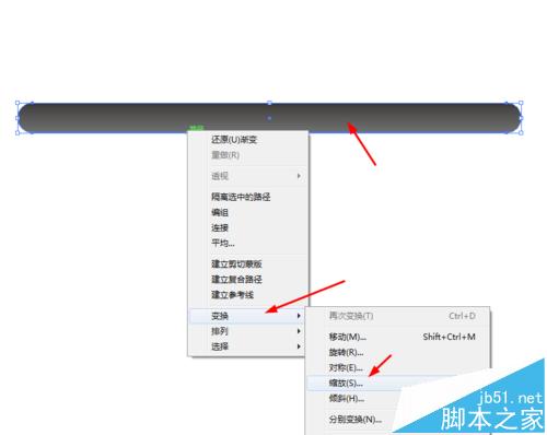 2、然后点击圆角图形右键选择变换—缩放复制圆角图形,并填充颜色,如图所示