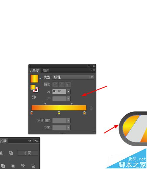 3、接着选择矩形工具,画一个矩形图形,并添加渐变颜色,倾斜30度角,如图所示