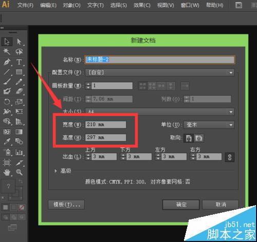 3、在新建文档的选框中,我们在宽度和高度处可以直接修改我们需要的尺寸,如下图所示。