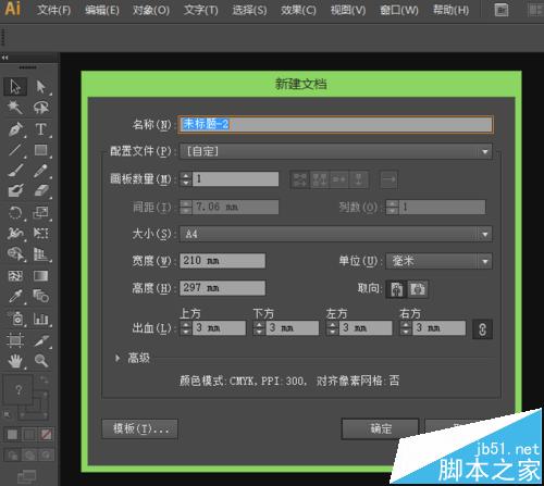 2、打开ai的软件,执行菜单栏中的文件—新建,或者直接按快捷键Ctrl+N,会弹出一个新建文档的选框,如下图所示。