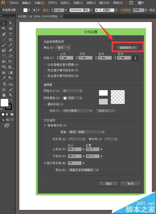3、我们在点击了文档设置后,会弹出一个文档设置的面板,我们在面板中找到编辑面板,如下图所示。