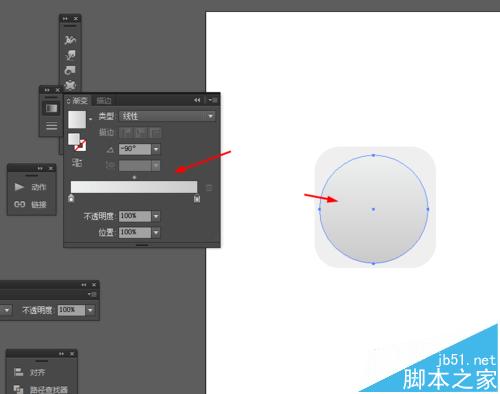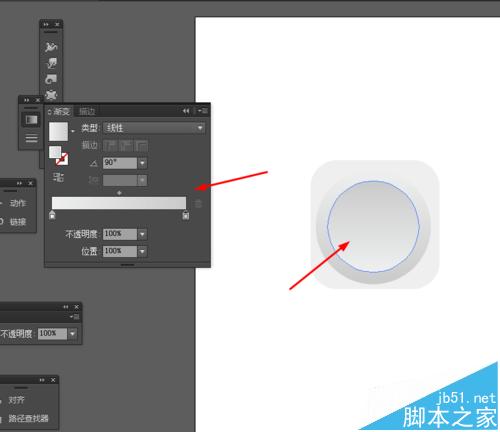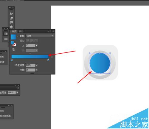 7、接着再点击圆形右键选择变换—缩放复制圆形,并添加渐变颜色,如图所示