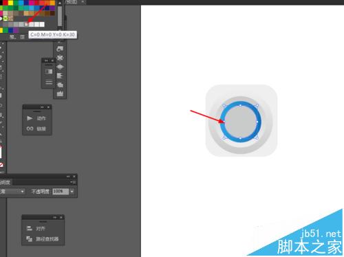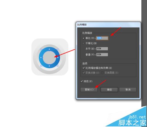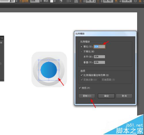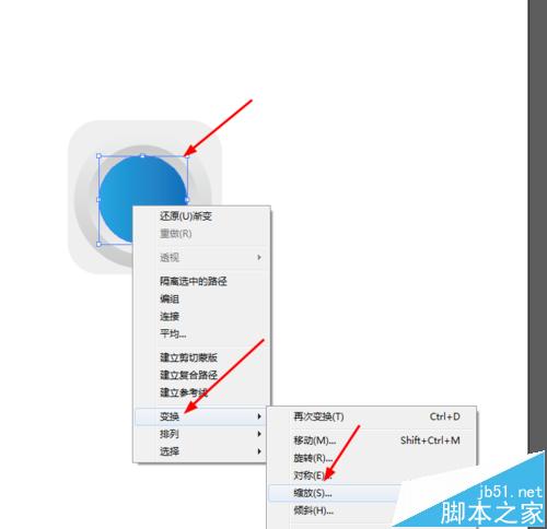6、点击圆形右键选择变换—缩放复制圆形,并添加渐变颜色,如图所示