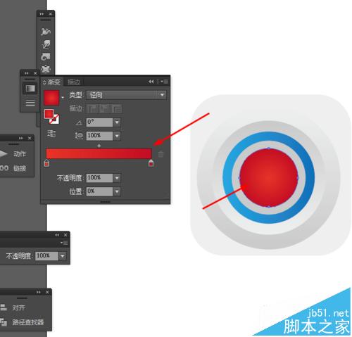 4、选中圆形到对象—路径—偏移路径,并添加渐变颜色,如图所示
