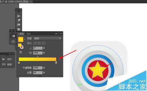 8、最后选择星形工具,画一个星星的图形,并添加渐变颜色,如图所示