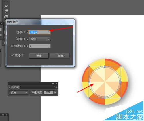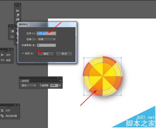 8、选中圆形到对象—路径—偏移路径,并填充颜色,如图所示