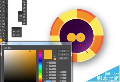 7、选中圆形到对象—路径—偏移路径,并填充颜色,如图所示