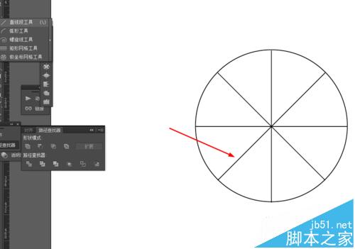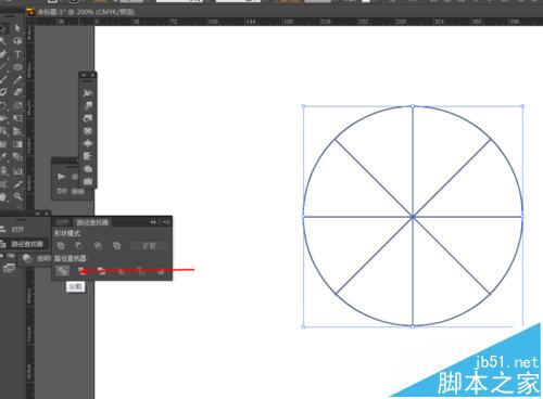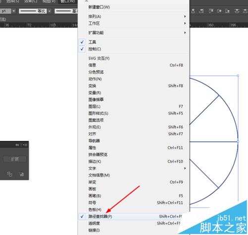 3、选中圆形和直线到窗口—路径查找器—点击分割,如图所示