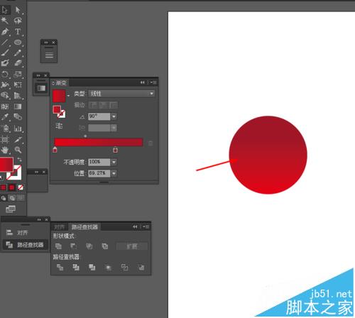 3、再选择椭圆工具,画一个椭圆图形,并添加渐变颜色,如图所示