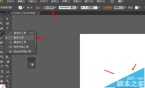 6、再选择弧线工具,画两条弧线,并描边改为6pt,如图所示