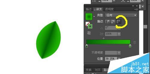7、对刚才的叶子,还可以添加渐变,注意是描边渐变
