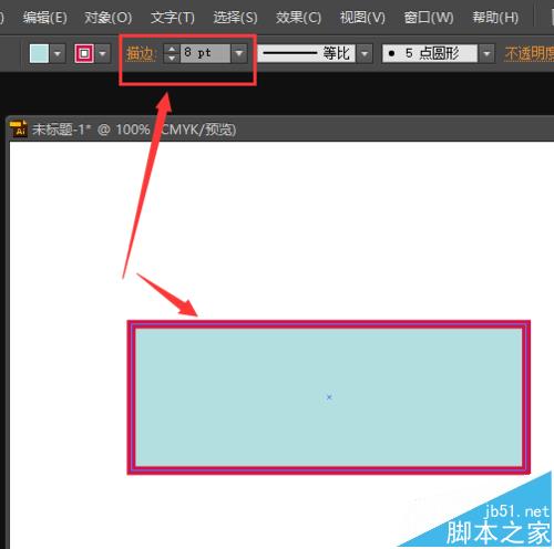 3、在AI页面的上面部分,找到【描边】字样,就可以改变描边的大小。