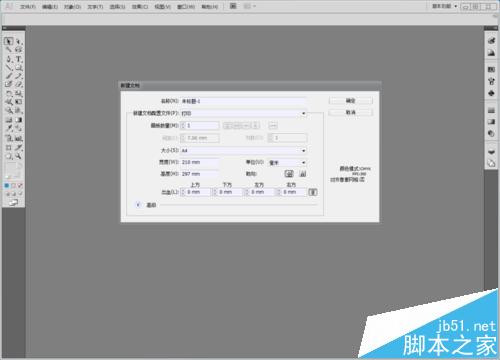 2、新建一个文档,设置为A4大小,其他参数保持默认设置。