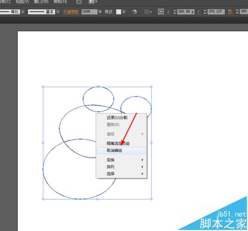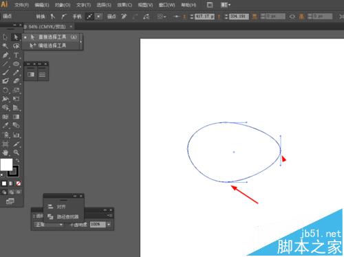 2、然后选择直接选择工具,调整一下椭圆形的锚点,如图所示