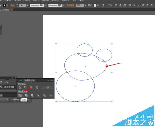 3、接着选择椭圆工具,画3个椭圆图形,再选中椭圆形到窗口—路径查找器—点击分割,如图所示
