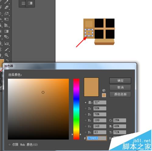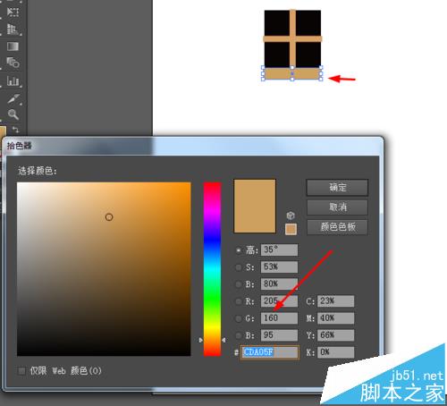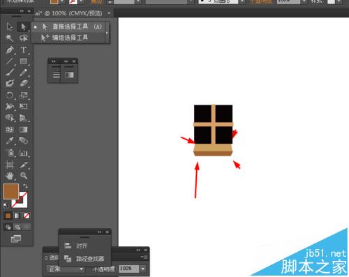 4、然后选择直接选择工具吗,把两个矩形的各个的锚点调整一下,如图所示