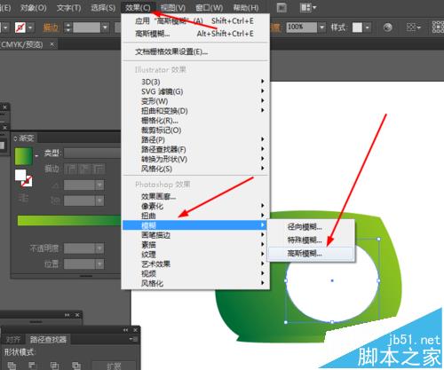 3、接着选择椭圆工具,画一个椭圆图形,并填充白色,再选择椭圆到效果—模糊—高斯模糊,再把不透明度改为40%,如图所示