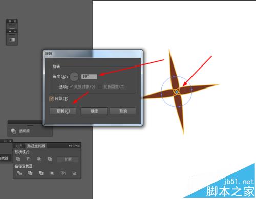 3、选中变换后的图形,按R键,按Alt移动锚点到中心位置,再按ctrl+D复制图形,如图所示