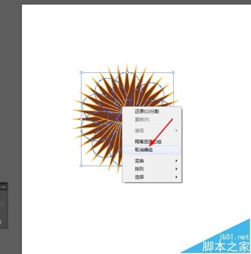 6、点击椭圆图形右键选择取消编组,并给分割后的图形添加颜色,不透明度改为80%,如图所示