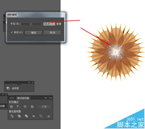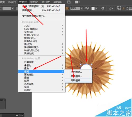 7、接下来选择椭圆工具,按住shift画一个·正圆图形,再选中正圆图形到效果—模糊—高斯模糊,如图所示