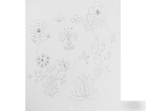 草图的表现非常自由,你可以从网路上搜索"考洛乔刺绣"找到很多灵感,然后把吸引你的图案画下来。草图不需要画得非常精确,大概表现即可。