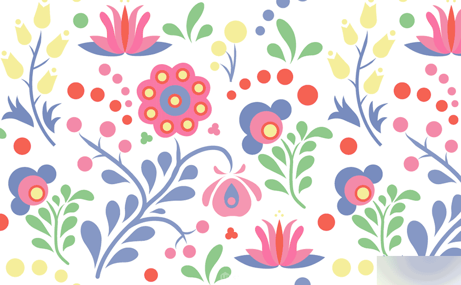 世界里的任何可以称之为美的装饰细节,其实都可以作为平面设计的灵感来源。民族风的图案大概就是最好的表达异域风情的运用。在我的收藏中有一种来自匈牙利的叫做"考洛乔"的本地刺绣。这种刺绣风格鲜艳活泼,常常是以花朵、藤蔓植物或鸟作为元素进行设计。因此,我想如果能做出"同款"无缝纹理,运用在设计中任何能体现异域风情的地方都会有不错的表现。