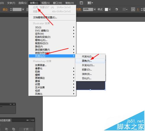 2、然后选中正方形到效果—风格化—圆角,如图所示
