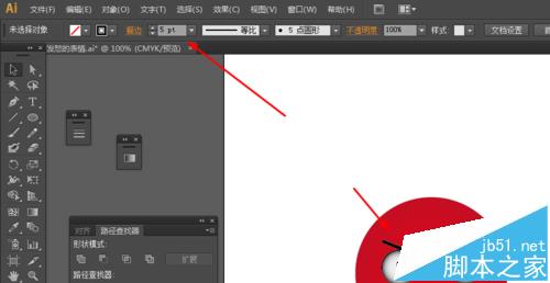 3、接着选择钢笔工具,勾出如下的路径,并描边改为5pt,如图所示