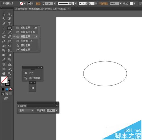 1、在Ai软件中,新建一个800*800的文档,选择椭圆工具,画一个椭圆图形,如图所示