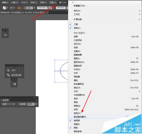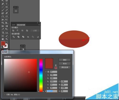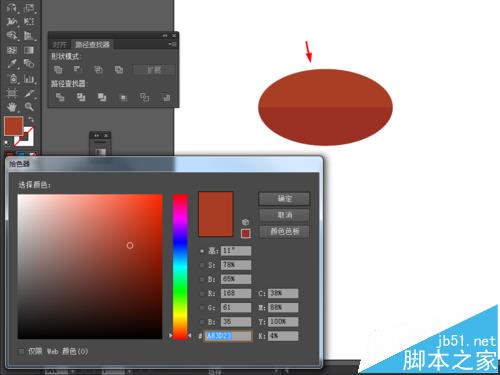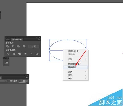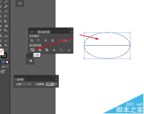 2、然后选择直线工具,在椭圆图形画一条直线,再选中椭圆图形和直线到窗口—路径查找器—点击分割,如图所示
