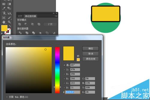 4、接下来选择矩形工具,画一个矩形图形,并填充颜色,再选择椭圆工具,按住shift画一个正圆图形,并填充颜色,如图所示
