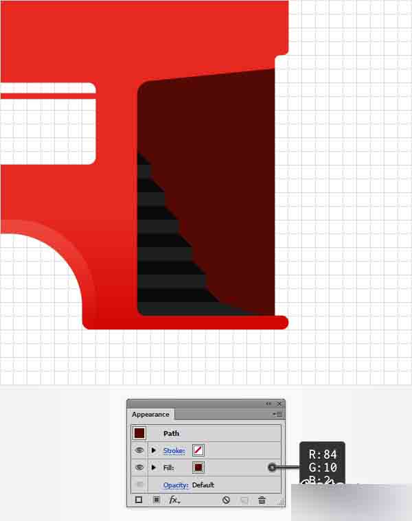 再次选择橘色图形,将目光投向外观面板并用深酒红 (R=84 G=10 B=2)色替换现存的填充色。