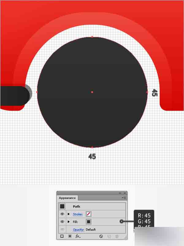 使用椭圆工具(L),创建一个45 px的形状,将其放置如下图所示的位置并设置颜色为 R=45 G=45 B=45。