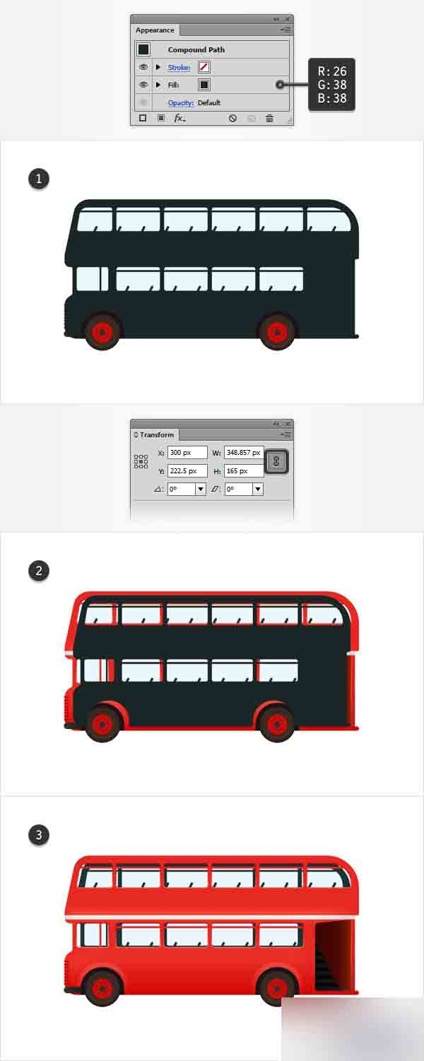 复制你的红色复合路径 (Control-C > Control-F),选择拷贝,并用R=26 G=38 B=38替换现存的颜色。