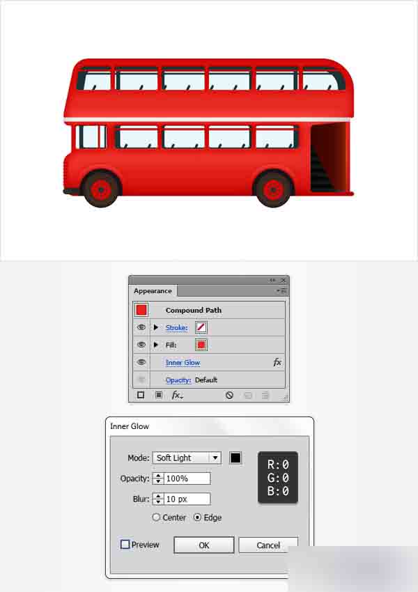 再次选择你的红色复合路径并如下所示添加内发光效果。