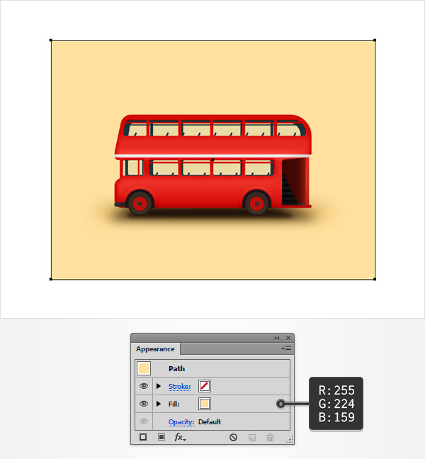 利用矩形工具(M),创建一个你的画板大小的形状,将其置于底层(Shift-Control-[)并确保颜色设为R=255 G=224 B=159。
