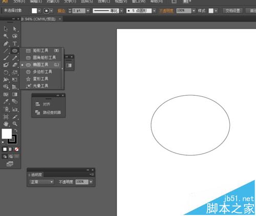 1、在Ai软件件中,新建一个800*800的文档,选择椭圆工具,画一个椭圆图形,如图所示