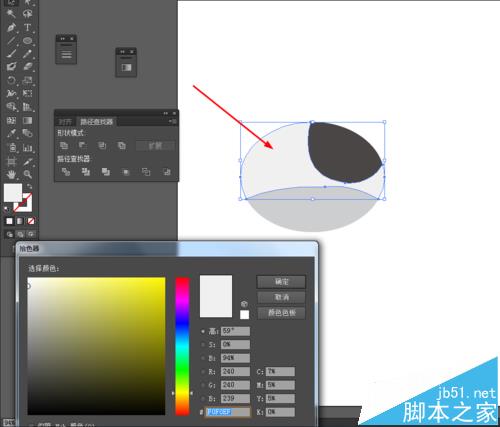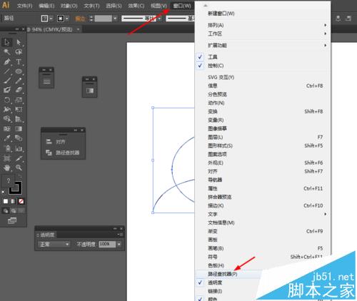 2、然后选择钢笔工具,勾出如下的路径,再选中路径和圆形到窗口—路径查找器—点击分割,如图所示