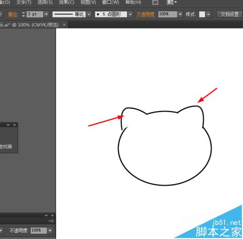 2、然后选择钢笔工具,勾出如下的图形,描边改为3pt,如图所示