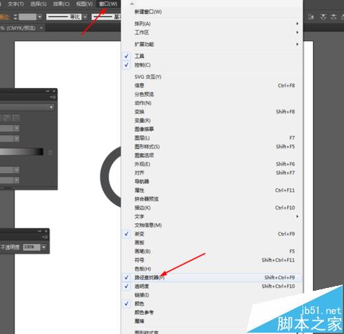 3、接着选中圆形到窗口—路径查找器—点击分割,如图所示