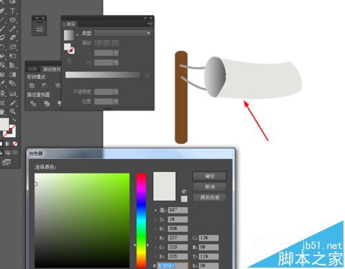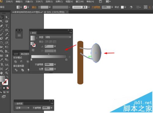 3、接着选择椭圆工具,画一个椭圆图形,并添加渐变颜色,如图所示