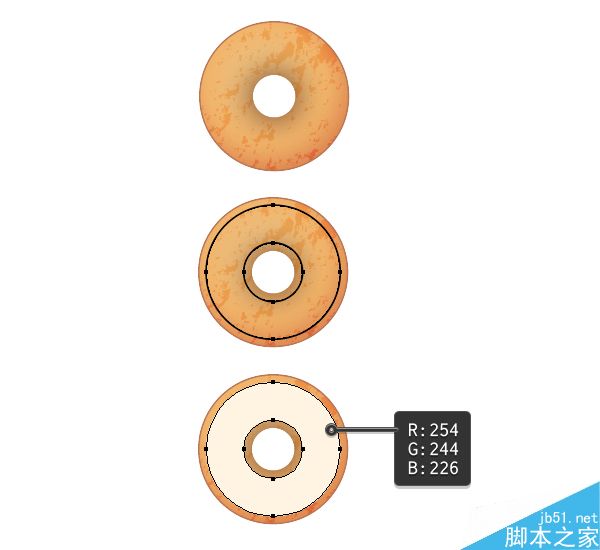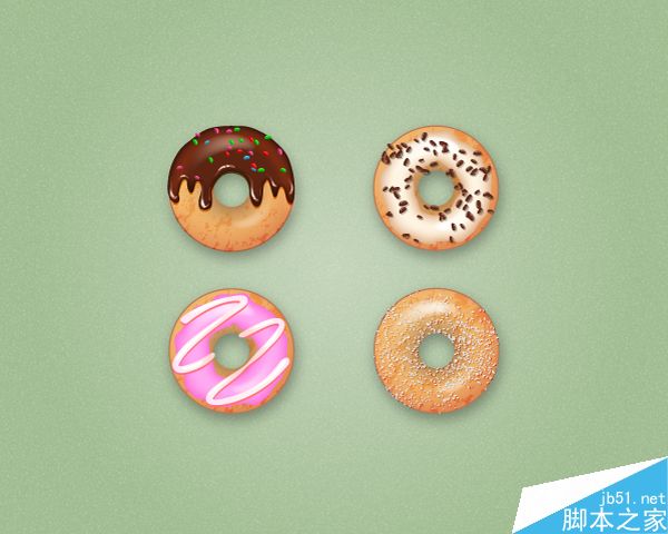 脚本之家的AI学习者们,大家好这篇教程教大家使用Illustrator中创建4种甜甜圈,包括巧克力、草莓、糖衣巧克力颗粒和纯糖甜甜圈,教程难度一般,但是界面也是英文版的。算是基础入门的工具运用和简单的AI操作介绍,推荐一下,和大家一起分享。先来看看效果图: