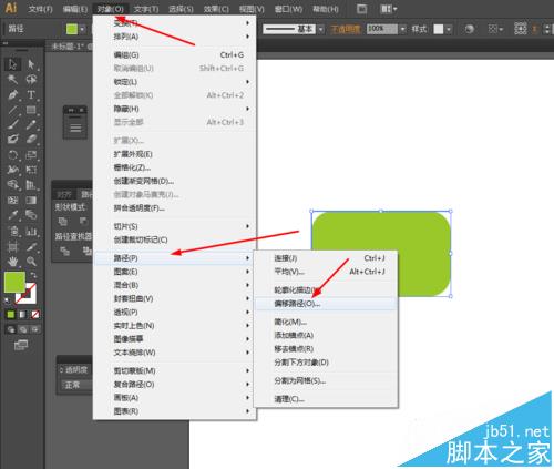 3、接着选中圆角图形到对象—路径—偏移路径,并填充颜色,如图所示