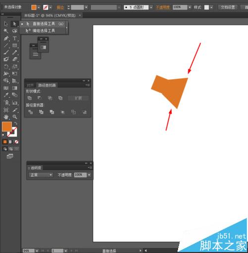 2、然后选择直接选择工具,把矩形的锚点移动一下,如图所示