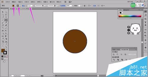 2、属性栏设置好填充色和描边色,描边大小6pt