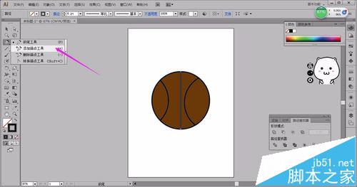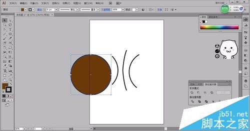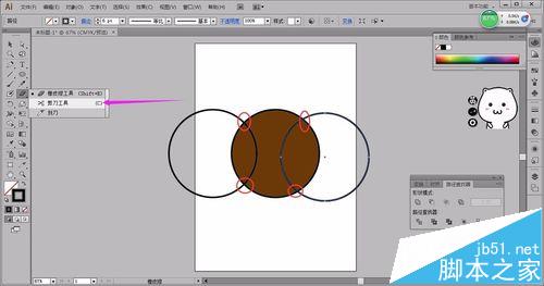 5、选工具里的剪刀工具,点椭圆交叉点。