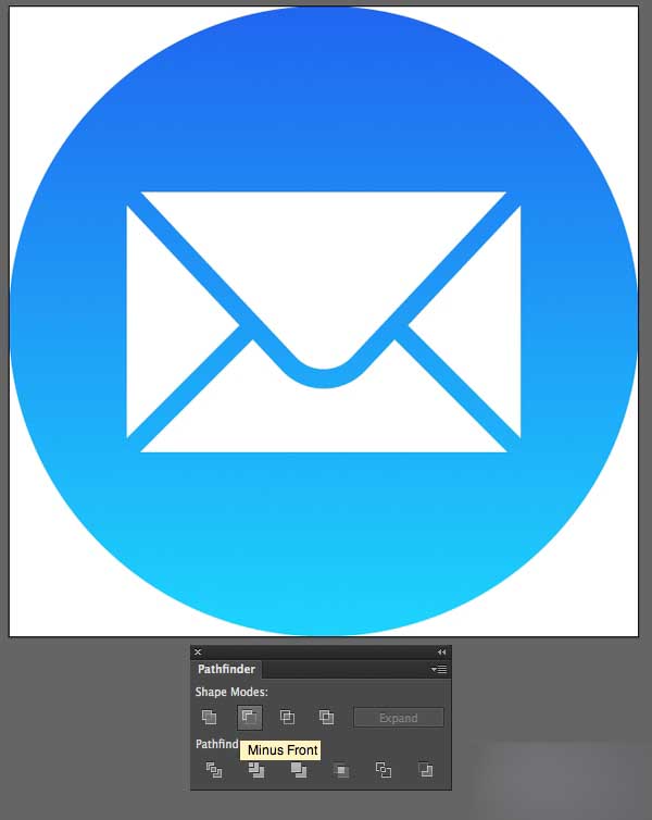 将信封的颜色转为白色,然后为我们的图标添加一个圆形的底子,用线性渐变从顶部的深蓝色(#2066F0) 到底部的亮蓝色(#1DD4FD) 填充。