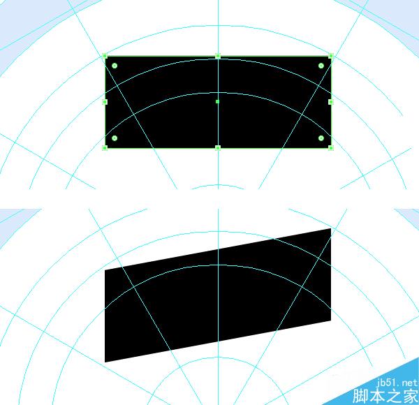 最后,旋转这个圆,使它上面的锚点大约向左偏45度。 用直接选择工具(A)拉动锚点,扩大形状。