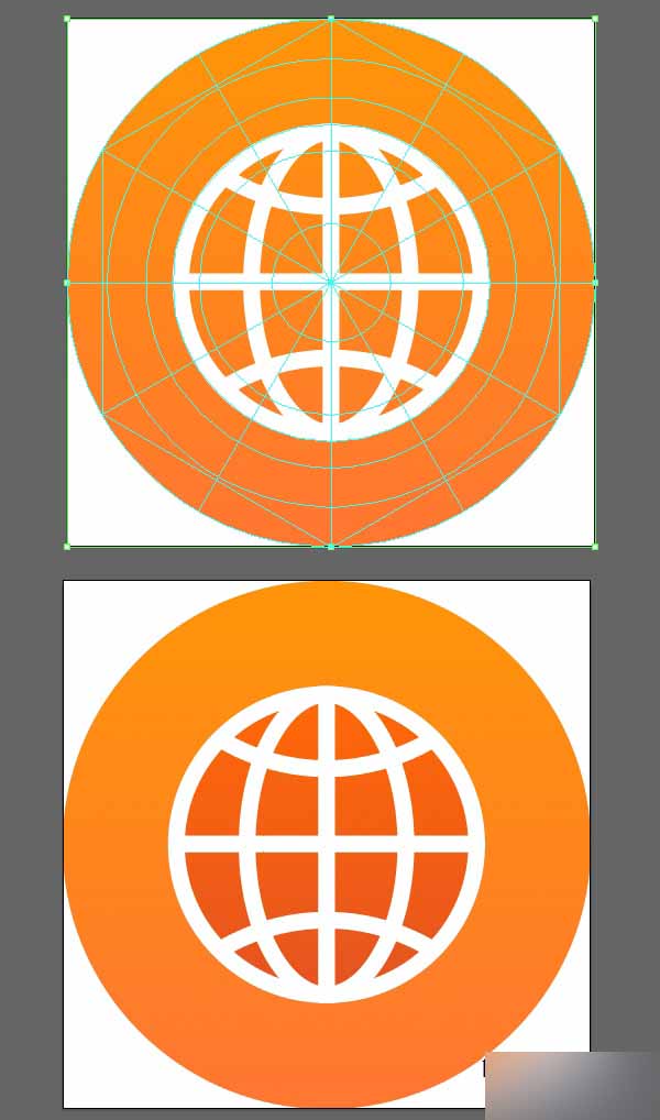 添加一个更小的深橘色 (#e45221)圆并且藏在球形形状的后面,给予更多的对比。